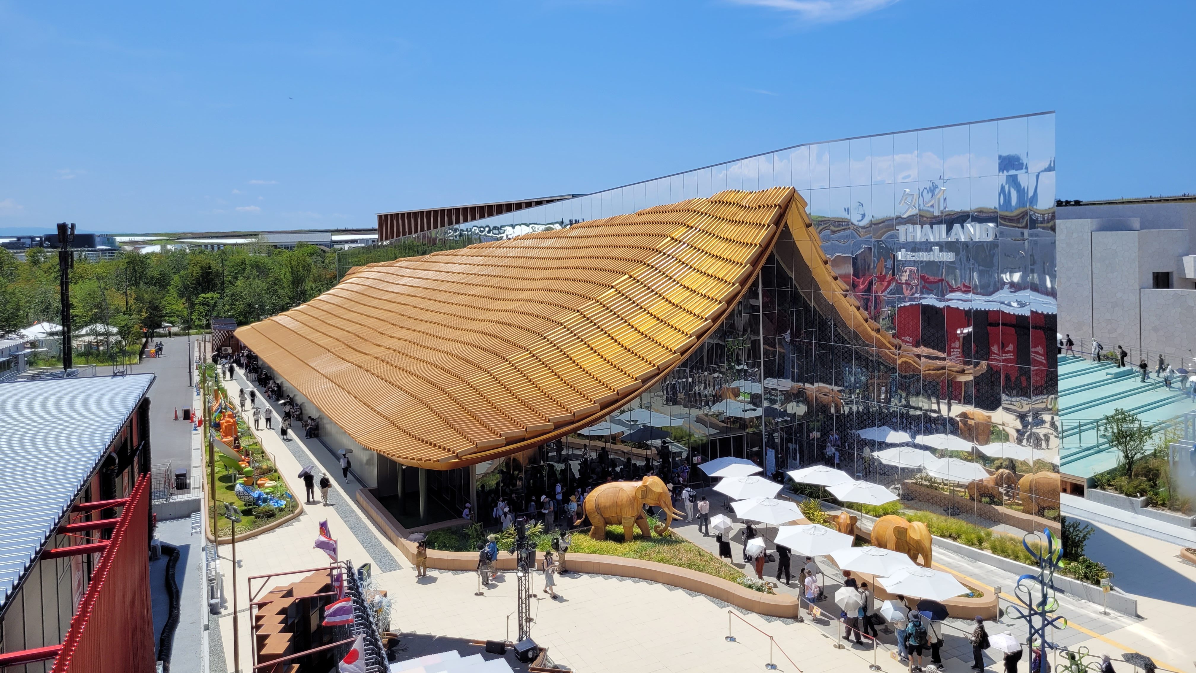 Ayant une réservation pour entrer à 9h00, j’ai eu la chance de profiter d’environ deux heures au cours desquelles il n’y avait pas beaucoup de visiteurs. Ça m’a permis de visiter plusieurs pavillons, mais après l’entrée sur le site des visiteurs de 11h00, j’ai dû faire des choix. J’ai donc surtout fait l’expérience de l’Expo en marchant sur le site et en allant voir l’architecture extérieure des pavillons. La vaste majorité de ces structures étaient très impressionnantes. J’ai pris plusieurs photos, mais je partage ici quelques pavillons dont l’aspect m’a été le plus frappant.