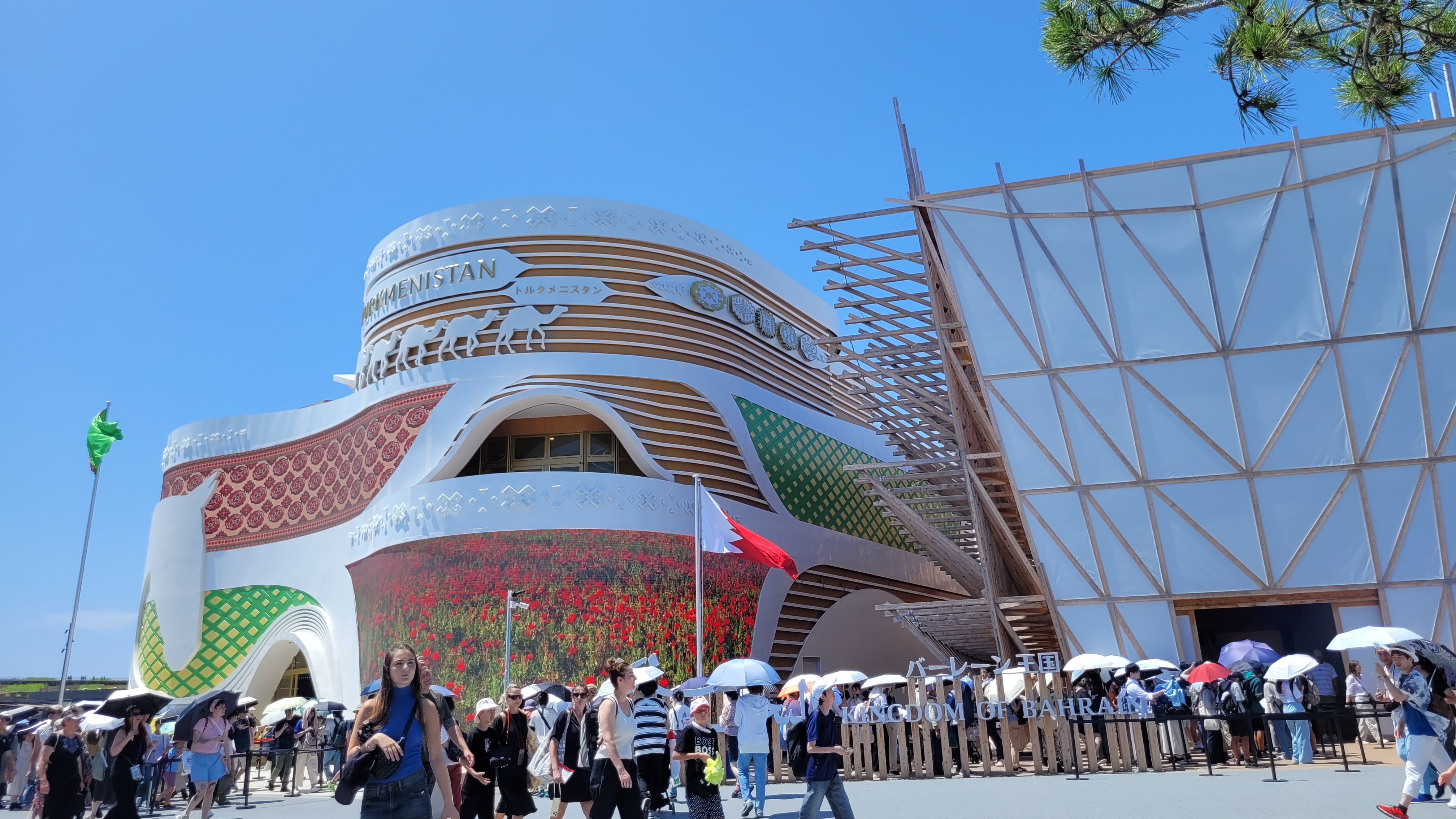 Le pavillon du Turkémistan, à gauche, m’a été présenté par plusieurs de mes élèves comme un pavillon qu’il fallait absolument voir, mais je dois avouer que cet engouement partagé est sûrement à voir comme la raison pour laquelle la file d’attente était si longue… Quand j’y suis arrivé pour le voir, cela faisait déjà quatre heures que j’étais sur le site, et je commençais à être fatigué, donc je n’ai pas rejoint la queue.