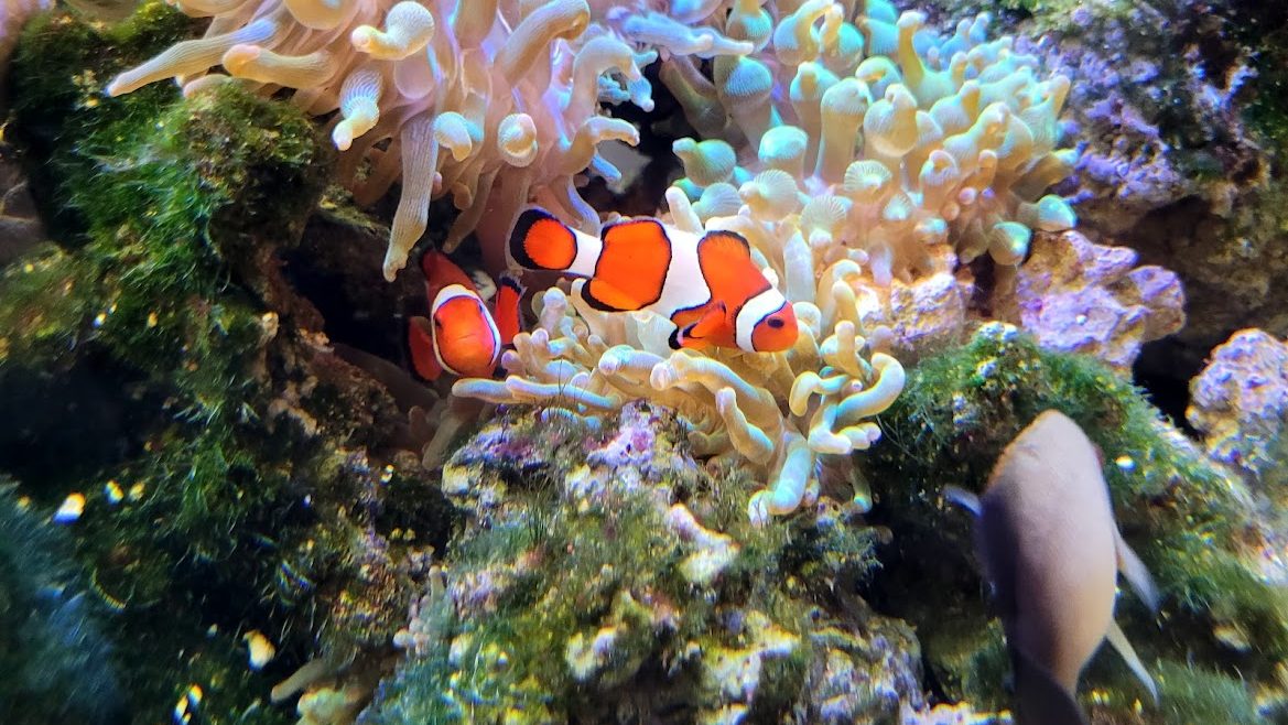 En ce qui concerne les poissons, on peut bien observer plusieurs poissons de haute mer. Il y a un seul grand aquarium, mais comme on peut l’observer sous différents angles et à différents niveaux, cela permet d’en diversifier l’usage. J’aurai aimé en prendre une photo, mais l’endroit était trop sombre pour que mon téléphone en prenne une qui me plaisait. Il y a aussi des petits aquariums de poissons tropicaux. On n’est donc pas en manque de pouvoir observer les « classiques » d’un aquarium.
