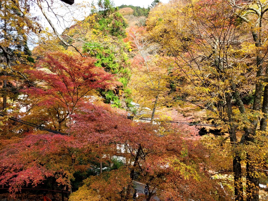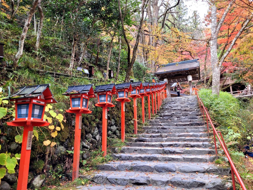Aujourd’hui, c’est ma fête et j’ai décidé de célébrer en me permettant une grande randonnée sur le mont Kurama pour aller voir les feuilles d’automne, mais aussi pour explorer cet attrait touristique important. Tôt le matin, après le déjeuner, j’ai pris mon vélo pour me rendre au nord de Kyōto et prendre le train vers la base du temple Kurama. J’ai ensuite entrepris de monter vers le bâtiment principal, et ensuite de continuer dans la forêt qui relie Kurama-dera au petit village de Kibune, où se trouve un sanctuaire shintō important.