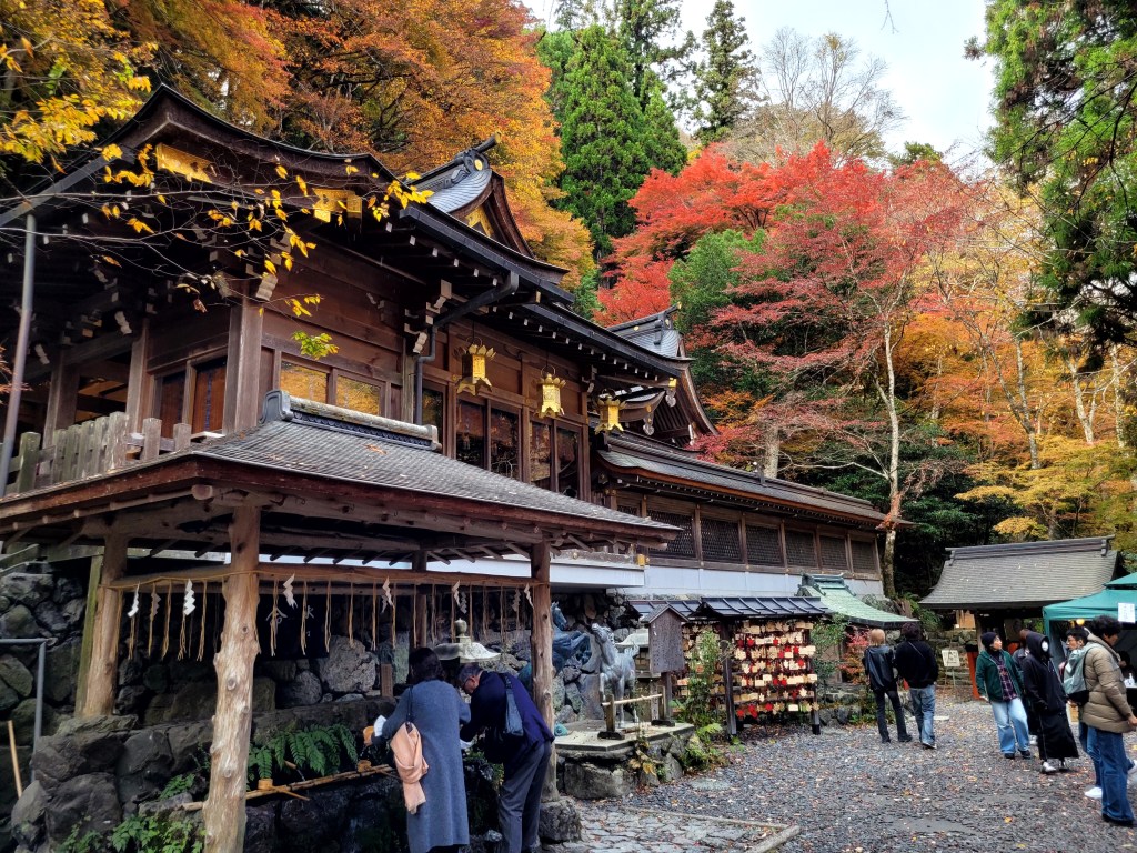 Une fois sorti de la forêt, on arrive à Kibune. Là, on peut trouver le complexe shintō de Kibune-jinja, vieux de plus de 1 600 ans. En fait, il est même plus ancien que la ville de Kyōto elle-même ! En gravissant son escalier de pierres usées, on arrive sur une terrasse entourée d’érables, où se trouve un autel dédié aux dieux de l’eau et de la pluie. Fait intéressant : immédiatement après ma visite, une petite bruine fine a commencé à se former. Une coïncidence bien fortuite.