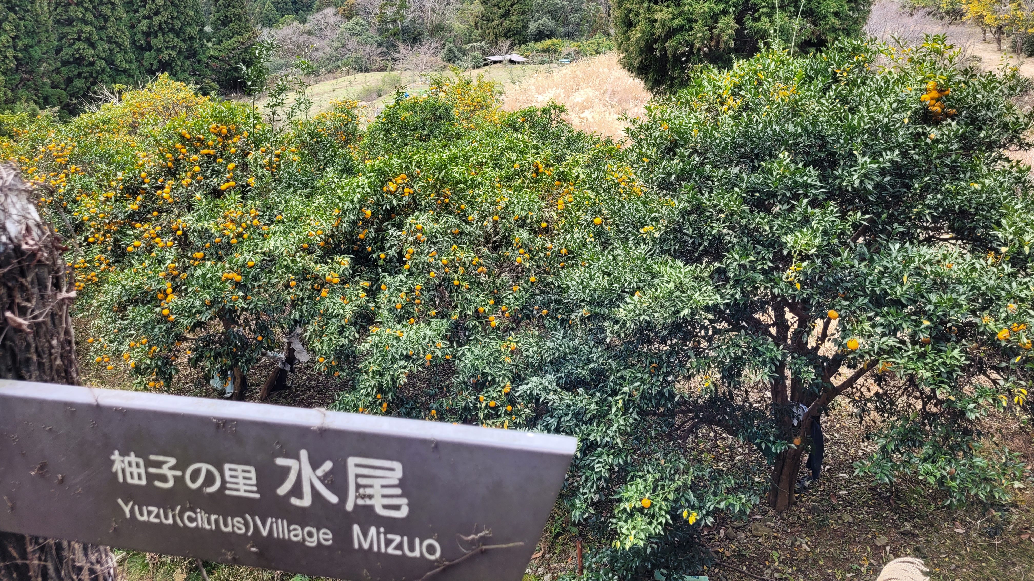 Ce village est célèbre auprès des gens de Kyōto pour ses grands vergers de yuzu, un agrume très populaire en Chine et au Japon. D’ailleurs, il existe une tradition qui consiste à mettre des yuzu dans l’eau du bain à l’hiver. Évidemment, on le fait à la maison, mais on peut aussi en voir dans les sources thermales publiques. En dehors de cela, cependant, ce n’est pas vraiment un fruit qui se mange : on se sert surtout du zeste et du jus pour agrémenter des plats, mais la chair elle-même n’a pas très bon goût.