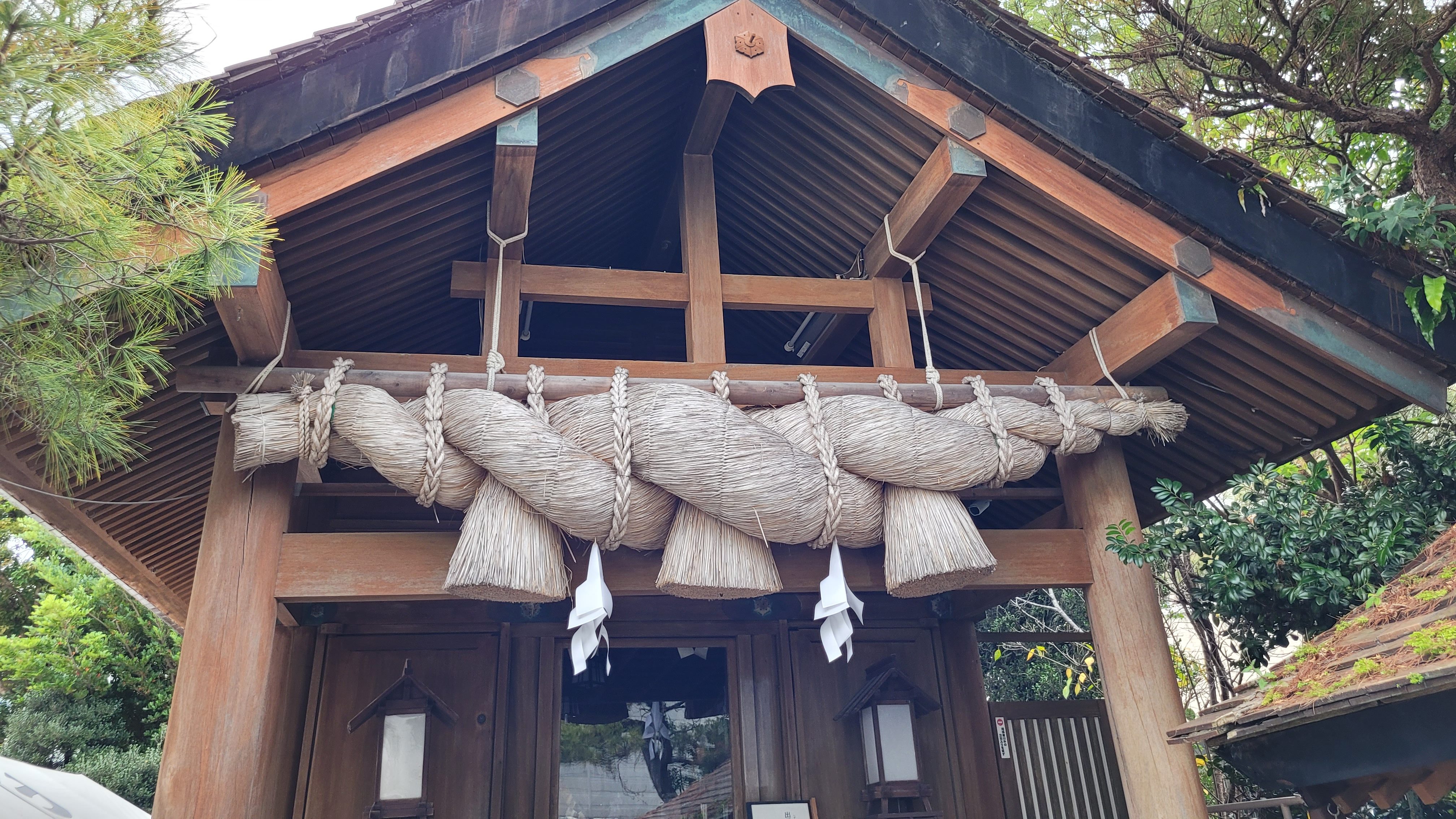 Pour commencer notre marche, nous avons pris le temps d’aller voir le sanctuaire shintō d’Izumo. Bien qu’il est généralement ignoré par les gens qui visitent Naha, ce petit sanctuaire de quartier abrite une grosse corde sacrée, similaire à celle du Grand Temple d’Izumo, dans la préfecture de Shimane. Bon, la taille n’est pas comparable, mais la corde reste un attrait intéressant d’un endroit pourtant peu visité.