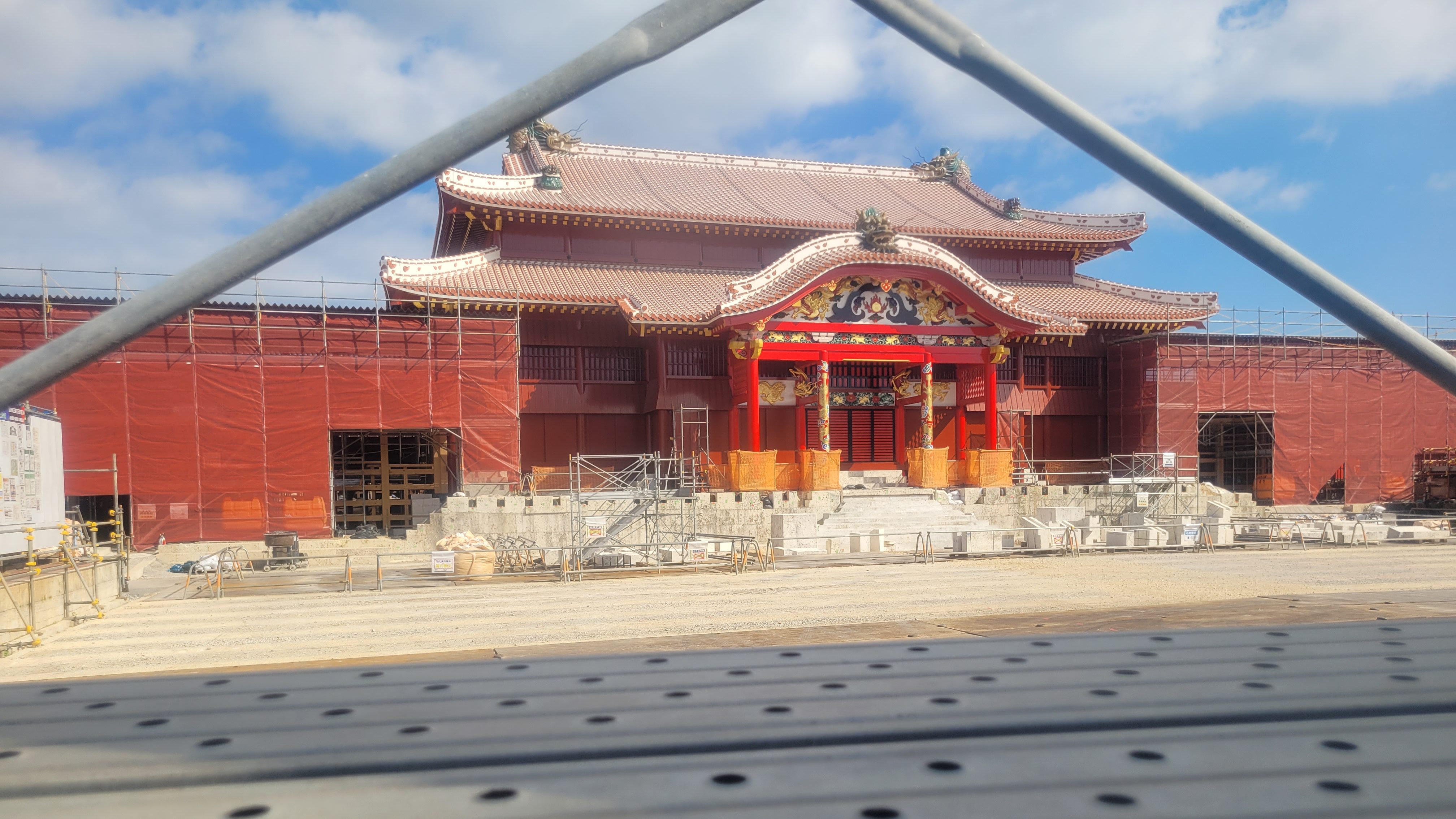 En ce qui concerne le château de Shuri, j’avais fait quelques recherches à son sujet avant mon départ. Il a été construit autour du quatorzième siècle, sous un modèle qui empruntait des influences de la Chine et du Japon. À l’époque, il s’agissait de la plus grande structure en bois du Royaume de Ryūkyū, et le siège de son gouvernement et du réseau religieux de l’île. Il a brûlé une première fois en 1709, mais a été reconstruit rapidement. Quand le Royaume de Ryūkyū a été annexé par le Japon et est devenu la préfecture d’Okinawa en 1879, le château a commencé à être utilisé comme base militaire. Il abritait aussi plusieurs petites écoles. En 1945, il a été brûlé pendant la Bataille d’Okinawa. Ensuite, il est devenu un campus de l’Université des Ryūkyū. Ce n’est qu’en 1992, après que l’université ait déménagé, que le complexe du Château de Shuri a été ouvert au public.