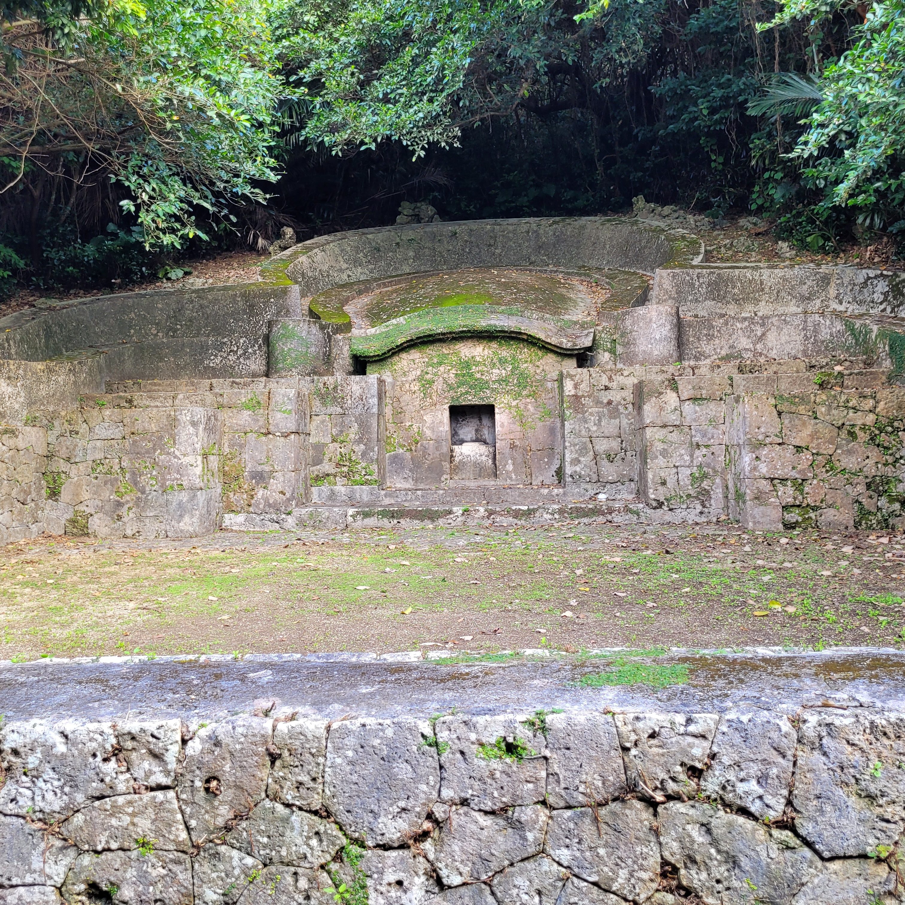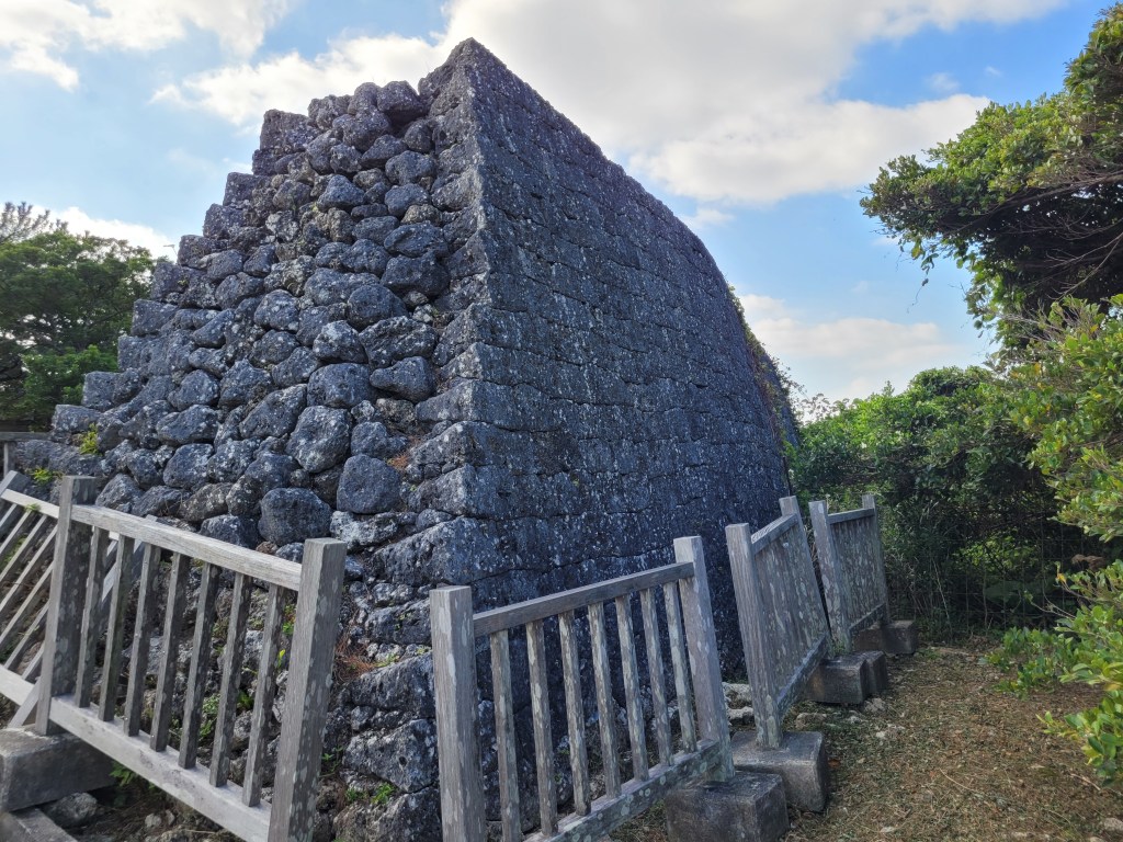 Une fois le ventre plein, nous sommes partis en direction du château de Shuri. En descendant vers celui-ci, on s’est brièvement arrêtés pour voir le mausolée de Tamaudun (udun est un mot de la langue locale pour désigner une tombe impériale). Il est impossible d’entrer dans le mausolée lui-même, mais un petit musée à côté de celui-ci nous permet d’en apprendre davantage sur son histoire et sur les personnalités impressionnantes qu’il abritait avant d’être détruit dans la guerre.