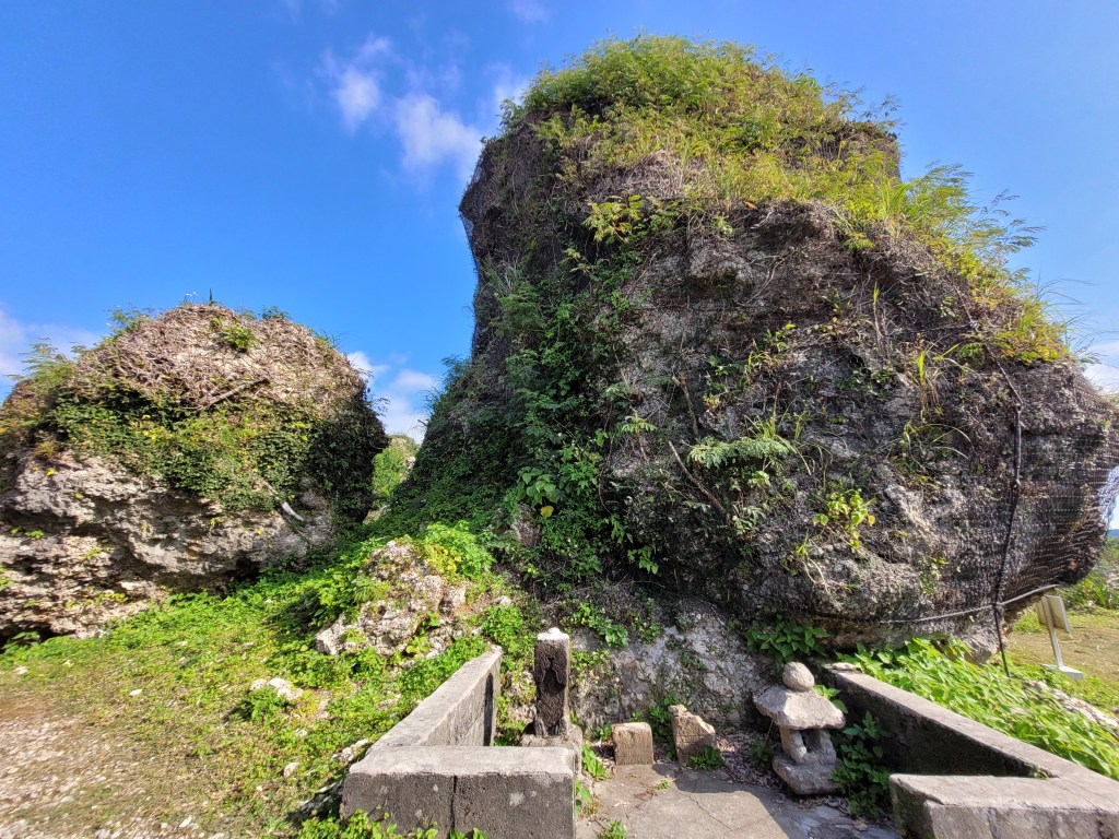 Pour faire un peu d’histoire, c’est le 25 avril 1945 que les Américains ont commencé leur attaque sur l’Escarpement. À cause de ses flans verticaux, les forces américaines y ont joué l’un des combats les plus difficiles de la guerre du Pacifique. Les forces japonaises, elles, avaient établi un système de tunnels pour mener leur combat à l’abri des frappes aériennes. Quand on est au pied de la colline, on peut voir l’entrée de certains de ces tunnels, aujourd’hui condamnés. Le 6 mai, les Américains ont pris contrôle total de la colline. Son point le plus haut, la pierre sacrée de Wakariji, a été renommé « Needle Rock » par les Américains.